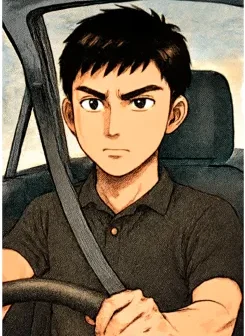 車内に漂うのは、雨に濡れた布の匂いと、新車特有の微かな香り。