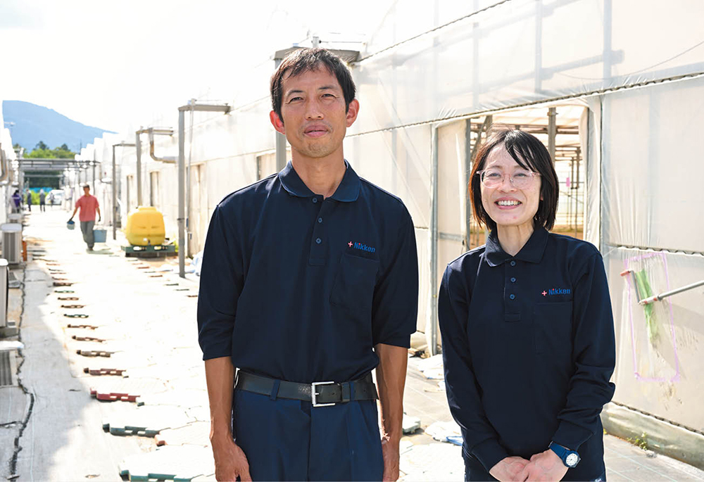 環境面でも、従業員が快適に働けるような工夫がなされている。ビニールハウスの骨組みには、日建リース工業の仮設資材を活用。台風クラスの強風にも耐える頑丈な構造により安全性を確保している。栽培には「高床式砂栽培ベッド」を採用。作業台の高さは約90cmあり、腰をかがめずに作業できるため、体への負担も小さい。ハウス内は天候の影響を受けにくく、衛生的な作業環境が保たれている。全ての工程はマニュアル化されており、どの工程に誰がいてもスムーズに作業できる体制が整っている。役割分担も明確で、一人一人が責任を持って取り組む姿勢が根付いている。